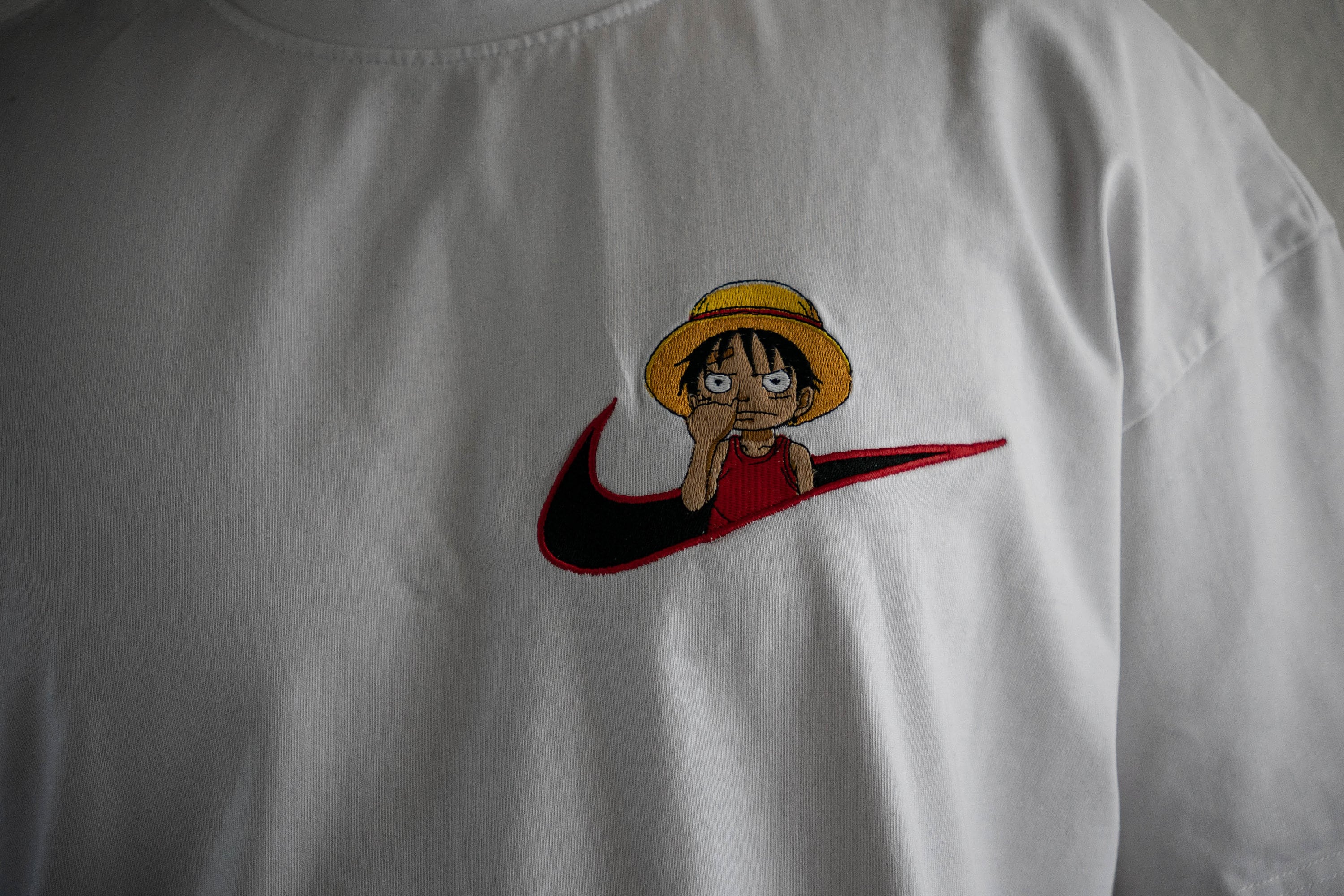 One Piece Luffy Picking Nose Embroidered T-shirt
